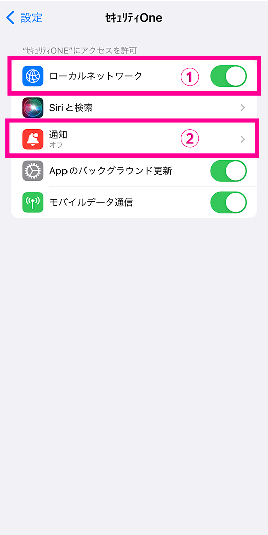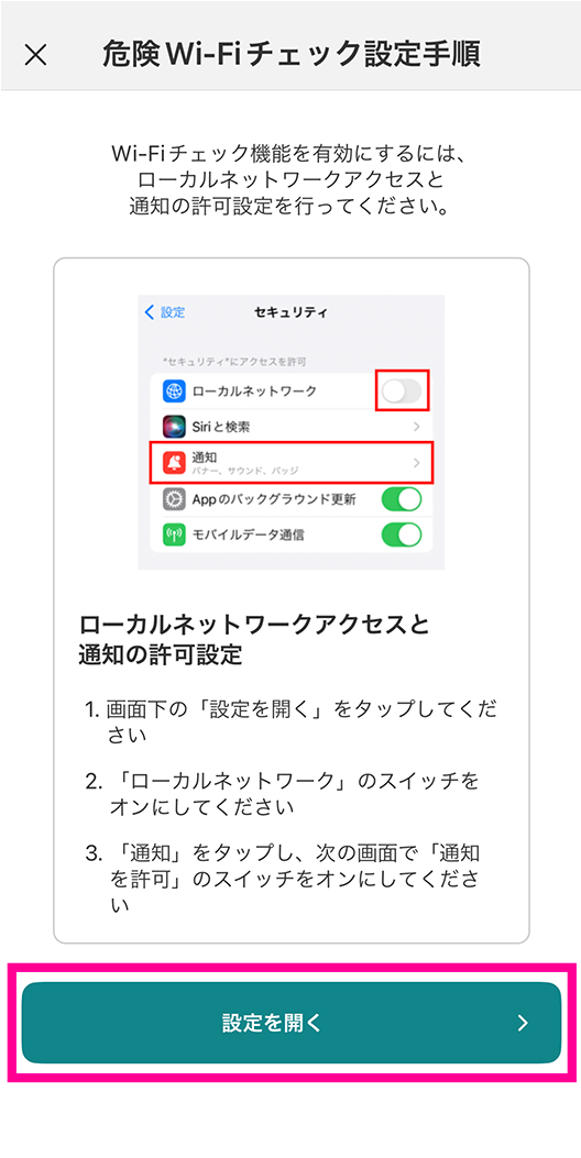 STEP 04 「ローカルネットワーク」のスイッチをONにし、「通知」をタップ