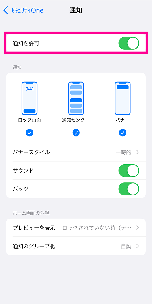 STEP 04 「セキュリティOne」のスイッチをONにする