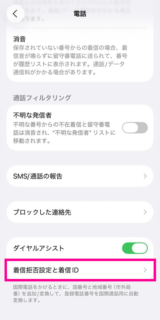 STEP 03 「着信拒否設定と着信ID」をタップ