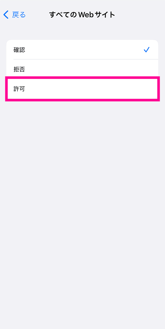 STEP 06 「すべてのWebサイト」内で「許可」にする