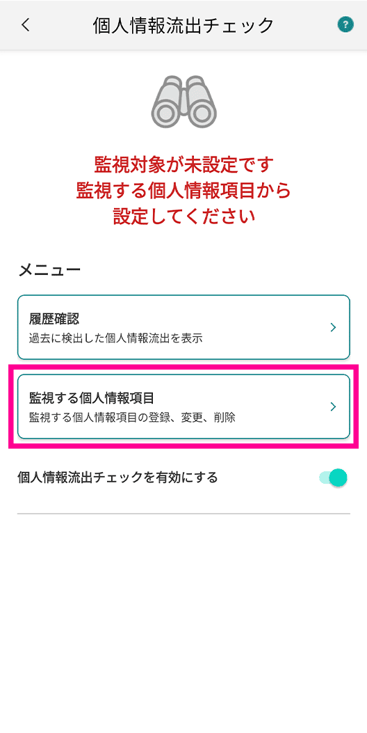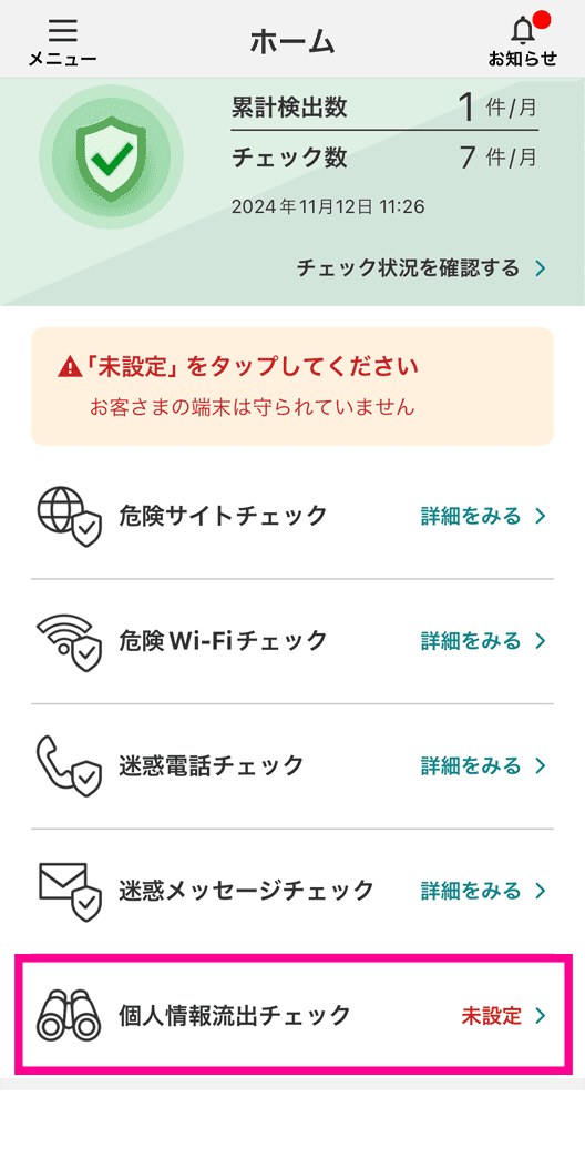 STEP 01 個人情報流出チェックの「未設定」を選択